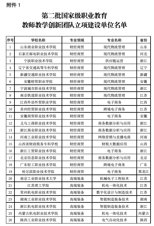 附件:1.第二批国家级职业教育教师教学创新团队立项建设单位名单